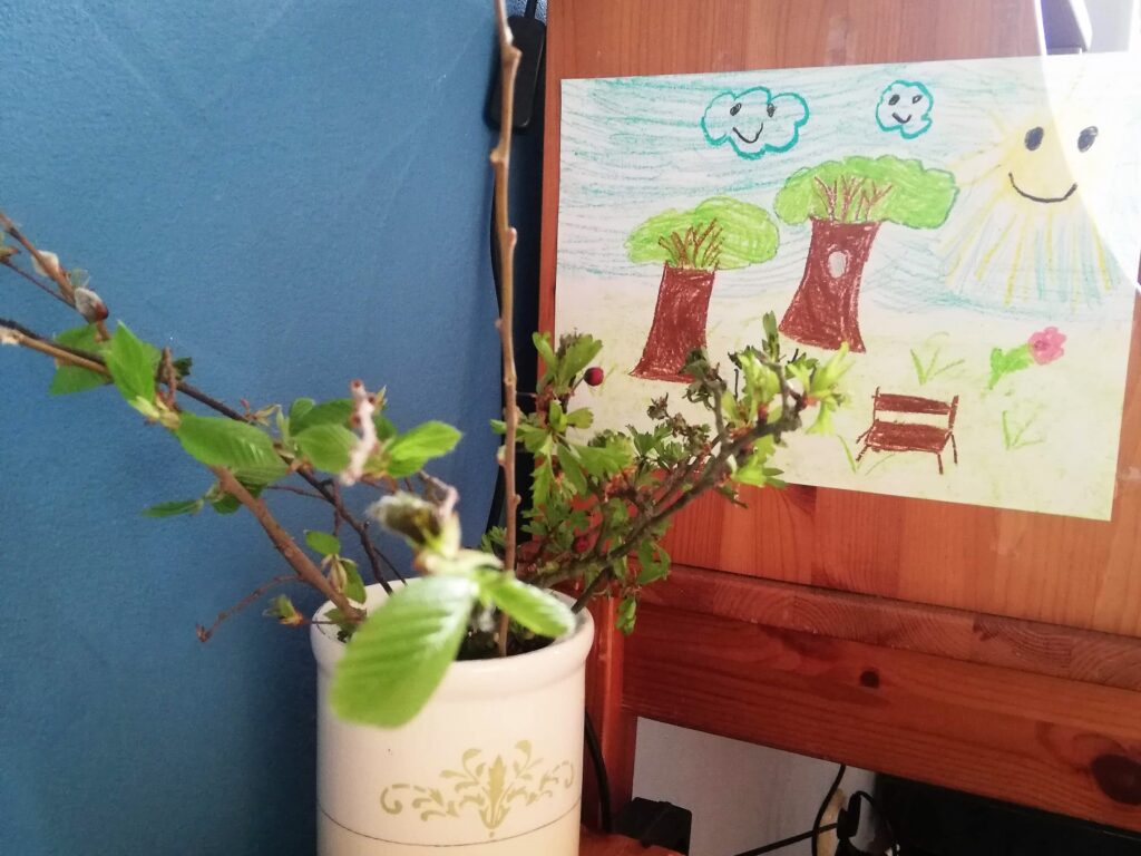 Raz w roku na Dzień Babci i Dzień Dziadka przeglądamy zdjęcia z całego ostatniego roku, aby stworzyć kalendarz ze zdjęciami naszej rodziny. W tym roku wydawało nam się, że prawie nie będzie z czego wybierać, bo przecież działo się niewiele rzeczy wartych uwieczniania. Jakież było nasze zdziwienie, gdy okazało się, że telefonem robiliśmy wiele zdjęć skupiających się na najprostszych sprawach i radościach, jakich szukaliśmy w pandemii. Przez ponad godzinę wspominaliśmy wszystkie podejmowane przez nas próby urozmaicenia pandemicznych czasów i szukania radości w drobiazgach. Pierwszy raz hodowaliśmy na balkonie warzywa, co kilka dni jeździliśmy do lasu. Odnajdywaliśmy w sobie ukryte dotąd pokłady geniuszu w przekształceniu tego, co mamy w to, co jest nam potrzebne. Krzesła stawały się wyspecjalizowanymi czołgami, balkon biurem, a przedpokój salą gimnastyczną. Ach, a w najgorszym czasie tęsknoty za zielenią rysunek ławki pod drzewem stał się parkiem.