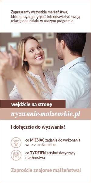 Ci z Was, którzy pozostawią swój adres e-mail, otrzymają informację o nowym zadaniu wprost na maila. Dodatkowo będziemy wysyłać Wam też raz na tydzień link do artykułu o tematyce małżeńskiej, powiązanej najczęściej, choć nie zawsze, z wyzwaniem na dany miesiąc. Artykuły pozwolą Wam pogłębić temat.