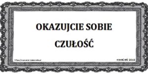 Waszym zadaniem na kwiecień jest okazywanie sobie czułości. Spróbujcie złapać się za ręce lub pod rękę w sytuacjach, w jakich tego dawno nie robiliście. Panowie, obejmujcie swoją żonę przy różnych okazjach. Pamiętajcie o pocałunku na dzień dobry i dobranoc.